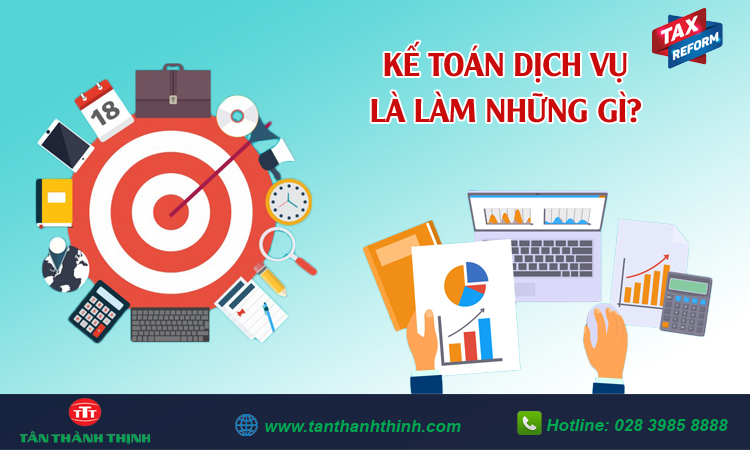 Kế toán dịch vụ là một loại hình kế toán đặc thù dành riêng cho các ngành dịch vụ, nhiệm vụ của kế toán dịch vụ cũng tương tự như kế toán trong doanh nghiệp, thực hiện theo dõi, lập báo cáo, cân đối chứng từ, tính chi phí, giá thành sản phẩm, lập báo cáo thuế, báo cáo tài chính doanh nghiệp….để đảm bảo giúp doanh nghiệp minh bạch hồ sơ, chứng từ và thực hiện đầy đủ nghĩa vụ với nhà nước.